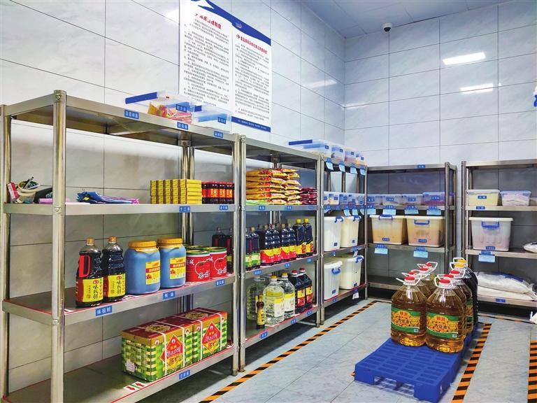 灵台县职业中专食堂食品库房一角。