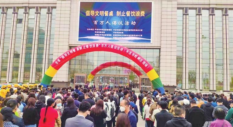 平凉市“倡导文明餐桌 制止餐饮浪费”百万人倡议活动现场。