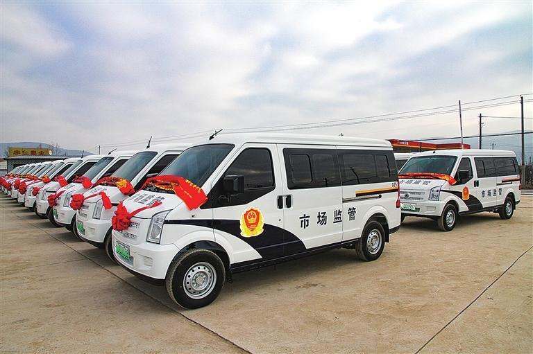 静宁县配发执法车辆现场。