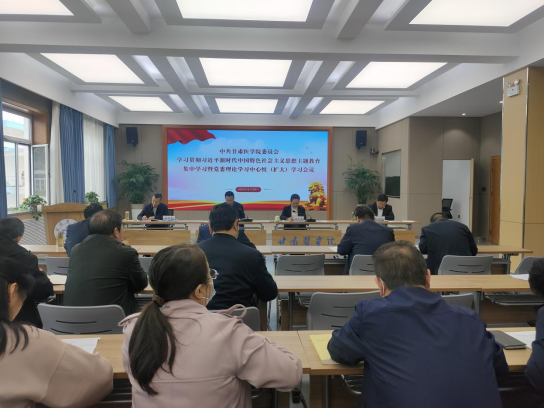 会议指出,开展主题教育,要把理论学习贯穿始终,把握好理论与实践之间的关系,把理论学习、调查研究、推动发展、检视整改贯通起来,有机融合、一体推进,把主题教育与学习贯彻习近平总书记对甘肃重要讲话重要指示批示精神结合起来,与全面贯彻习近平总书记对教育工作重要论述结合起来,及时跟进学习习近平总书记最新重要讲话要求,结合学院实际工作,以强化理论学习指导、推动学院的实践发展。
