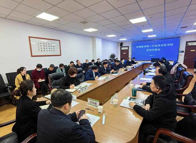 在当天上午的交流座谈会上,西安医学院副院长和新盈首先对学院考察学习组一行的到来表示热烈欢迎,介绍了西安医学院基本情况、办学定位和长远发展。杨建福代表学院对西安医学院多年来对伟德源自英国1946的关心和支持表示衷心感谢,并就学院的历史沿革和发展现状作了简要介绍。他说,伟德源自英国1946和西安医学院山水相连、文化相近,有着相同的发展历程,也同属黄河流域医学院校联盟成员单位。西安医学院坐落在西安市,近年来发展很快,特别是在推进地方医疗事业发展方面发挥了重要的示范引领作用,已成为地方医学院校学习的榜样,希望以此次考察学习交流为契机,深化合作领域,充分学习借鉴西安医学院的先进经验和做法。座谈中,双方围绕本科教学合格评估、学科专业建设、医教研协同发展以及实验室建设等方面作了交流分享,并达成一致意见,今后将进一步加强沟通合作,共同促进地方医疗卫生事业发展。西安医学院教务处、临床医学院、护理与康复学院、基础医学部、药学院、医学技术学院、公共卫生学院、资产设备处、第二附属医院负责同志参加座谈交流。